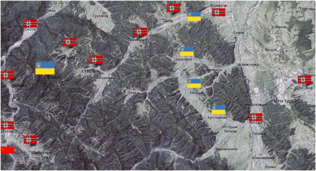 6 липня 1944 р. повстанці атакували німецьку колону, захопили три вантажівки, кілька десятків гвинтівок, кілька кулеметів. У полон потрапив німецький офіцер, який стверджував, що німецькі підрозділи планують наступ на села Брязу, Слободу Болехівську, Липу, Лужки, Кам’янку. Упівські розвідники повідомили, що німці концентрували сили у Болехові, Долині та Вигоді.
