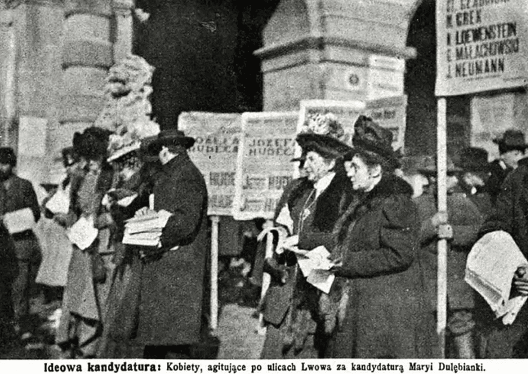 Перші вибори у Львові, на яких одним із кандидатів стала жінка, відбулися в 1908 році. У списку послів-претендентів від міста Львова до Галицького сейму опинилася польська малярка і активна феміністка Марія Дулембянка, делегована від створеної напередодні «Асоціації за рівність жінок» (Związek Równouprawnienia Kobiet).