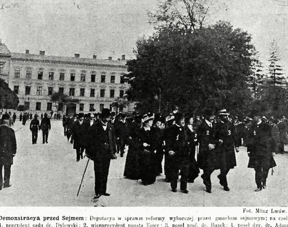 Треба зауважити, що тоді у Львові, та й по всій Галичині загалом, обмежені у виборчих правах були не лише жінки, а й частина чоловіків. У законі про місцеве самоврядування від 12 серпня 1866 року зазначалося, що право голосу надається кожному повнолітньому громадянину держави, який мешкає на цій території не менше року і сплачує податки безпосередньо від свого нерухомого майна, підприємницької діяльності чи інших доходів.
