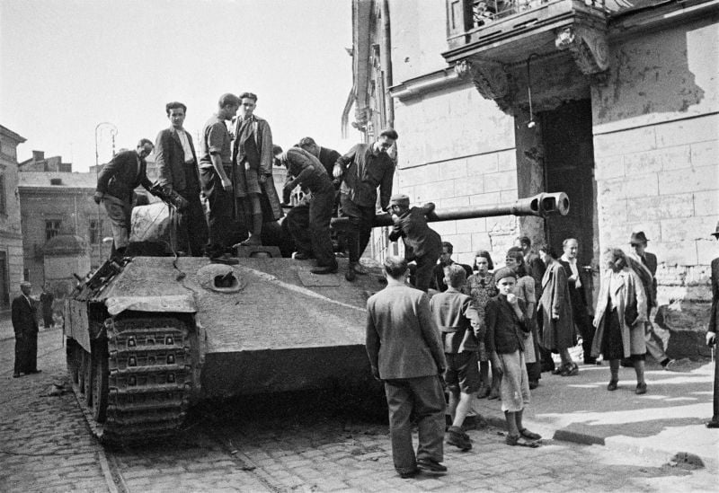 У липні 1944 р. радянські війська спільно з бійцями Армії Крайової вели бої за Львів. Бої не відзначались запеклістю, а Львів, на щастя, не став Сталінградом. Та німці мали у місті невелику кількість танків та САУ, чинили опонентам запеклий опір. Серед німецької бронетехніки були й “Пантери”. Далі на lvivyes.