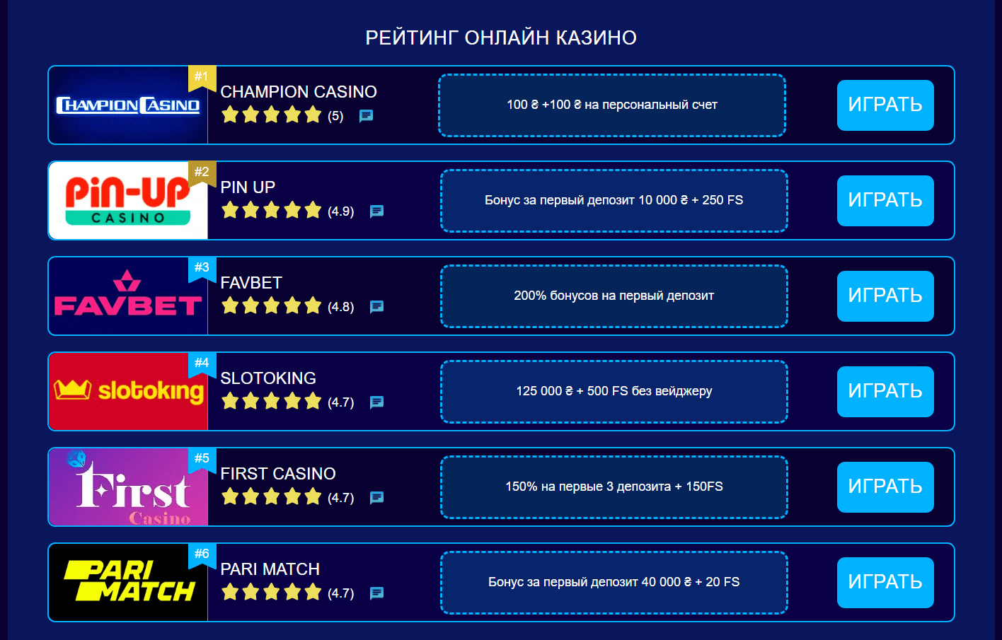 Найкращі онлайн казино